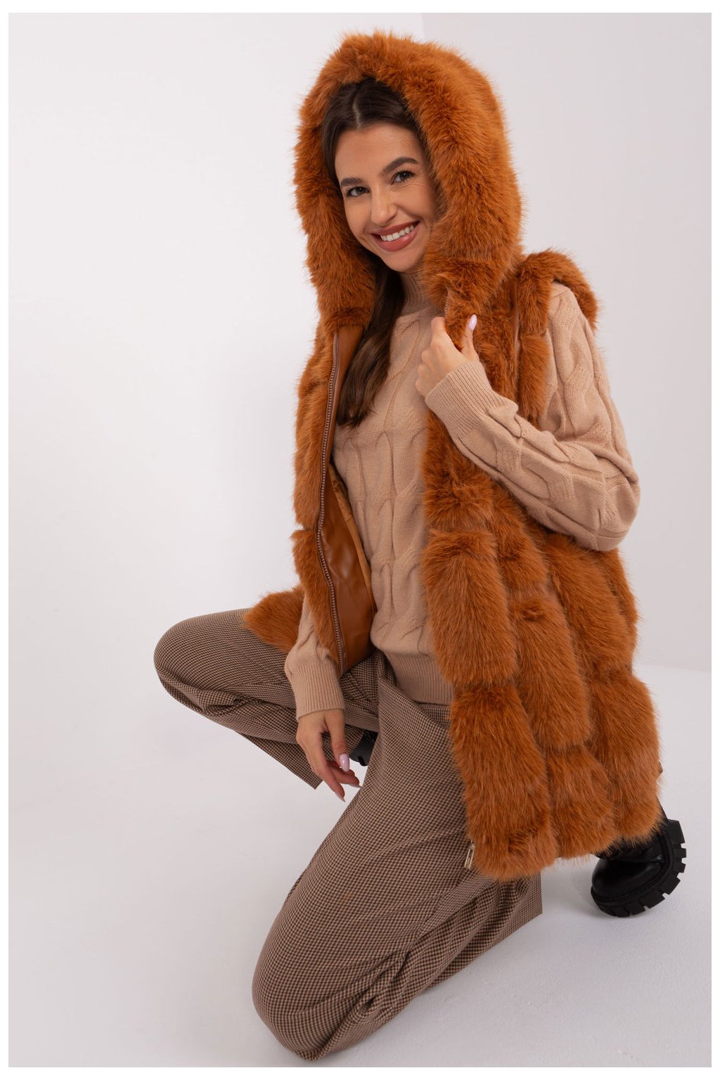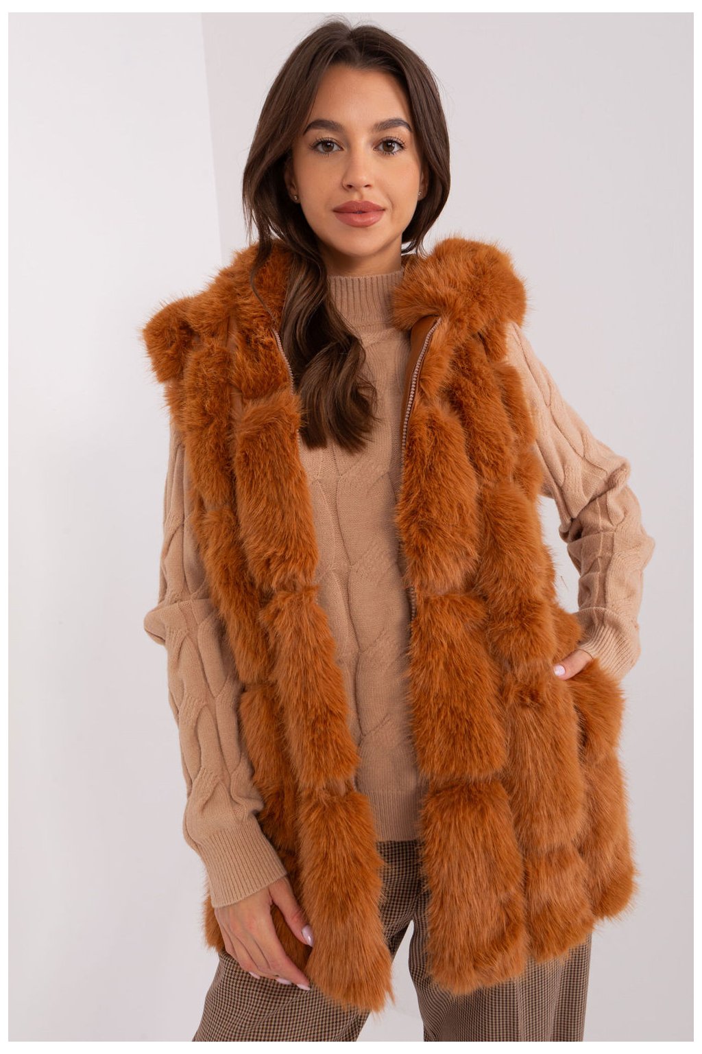 Tato kožešinová vesta jistě dodá vašemu šatníku eleganci a teplo. Je vyrobena z odolného polyesteru a poskytuje měkkost a pohodlí pro každodenní nošení. Její standardní délka je ideální pro různé příležitosti, běžné i výjimečné vycházky. Vesta je vybavena praktickými kapsami, které dodávají funkčnost a úložný prostor pro drobnosti. Díky vnitřní podšívce je tato vesta vhodná pro chladnější dny, kdy vás udrží v pohodlí a teple. Díky ležérnímu stylu se hodí k mnoha outfitům a dodává jim eleganci a jedinečný šarm. Vesta je navíc vybavena kapucí, která dodává dodatečnou ochranu před větrem a chladem. Díky zapínání na zip se snadno obléká i svléká. Tato kožešinová vesta je ideální volbou pro každou příležitost a dodá vašemu šatníku nejen teplo, ale i styl.