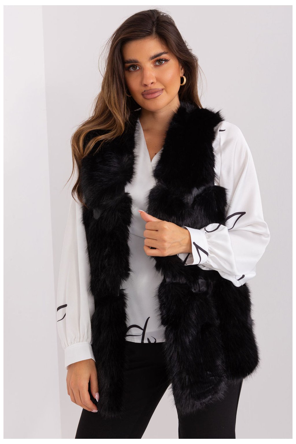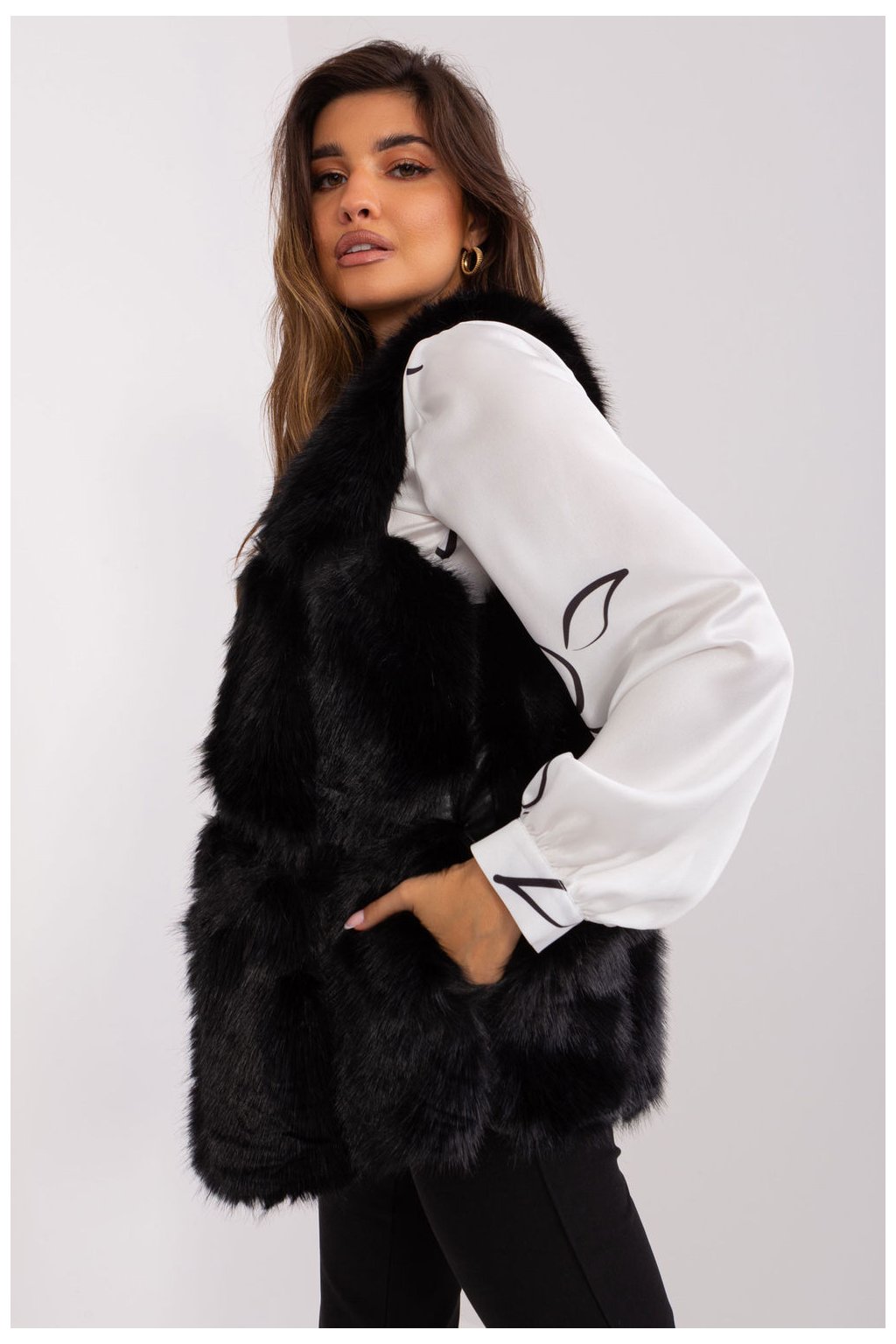 Tato kožešinová vesta je dokonalým doplňkem vašeho každodenního šatníku. Je vyrobena z měkkého a na dotek příjemného polyesteru a poskytuje pohodlné nošení během podzimní/zimní/jarní sezóny. Délka vesty je standardní, což z ní činí velmi univerzální kousek oblečení. Má praktické nakládané kapsy, které jí dodávají na praktičnosti. Vesta není zateplená, takže je ideální pro každodenní příležitosti. Zapínání na háčky a smyčky je jednoduchým a elegantním řešením. Vesta nemá kapuci, což jí dodává na lehkosti a činí z ní ideální volbu pro různé příležitosti, ať už do práce nebo na běžné nošení. Navíc je podšitá pro pohodlné nošení. Je to elegantní kousek do vašeho šatníku, který dodá charakter každému oblečení.