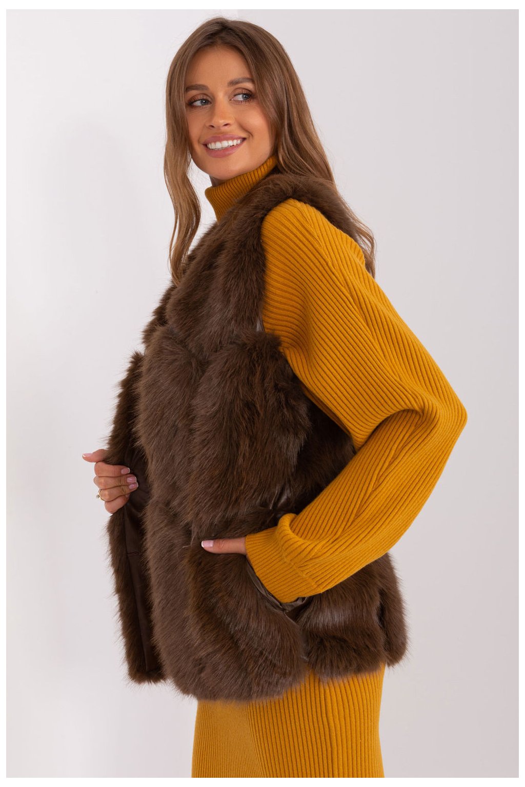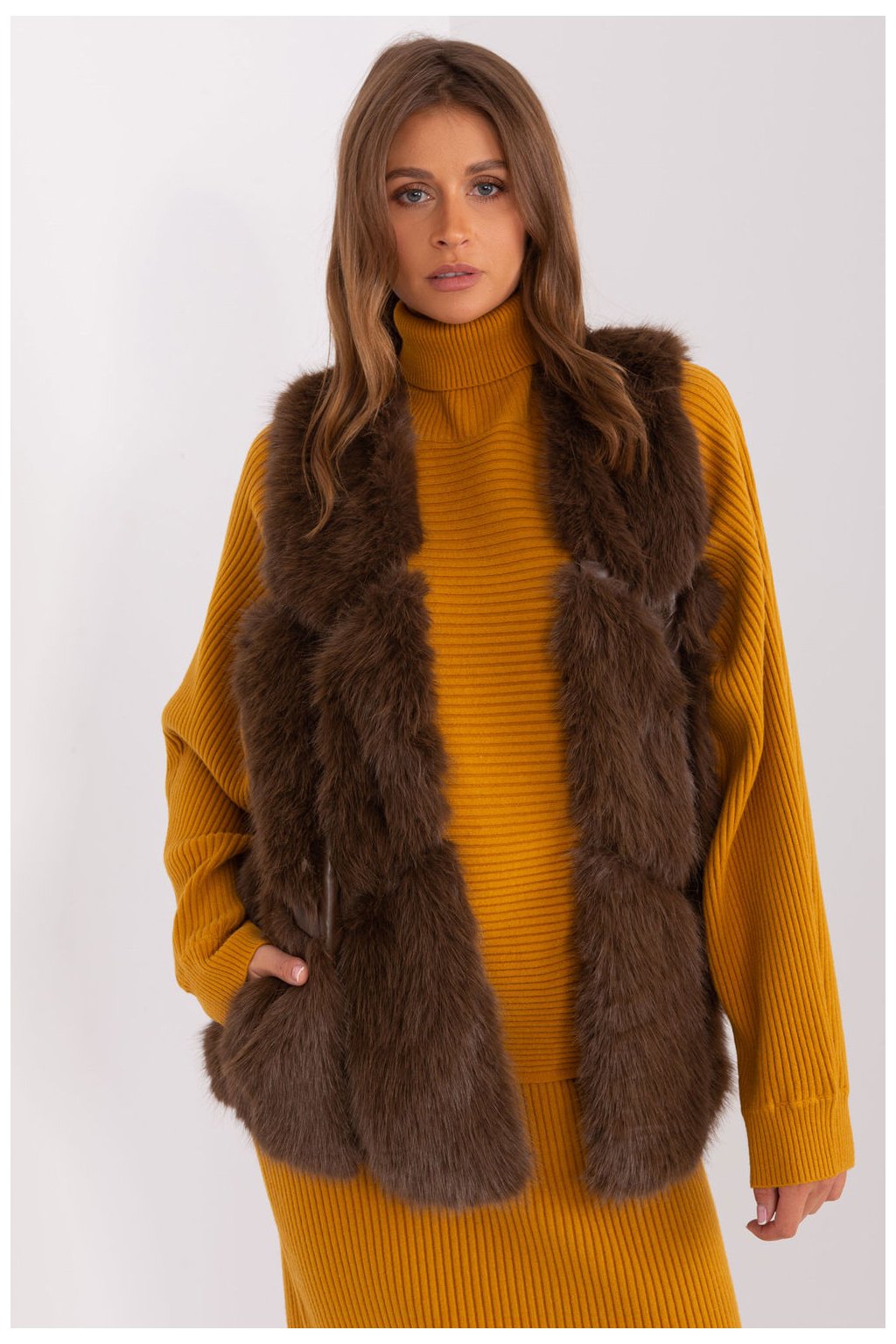 Tato kožešinová vesta je dokonalým doplňkem vašeho každodenního šatníku. Je vyrobena z měkkého a na dotek příjemného polyesteru a poskytuje pohodlné nošení během podzimní/zimní/jarní sezóny. Délka vesty je standardní, což z ní činí velmi univerzální kousek oblečení. Má praktické nakládané kapsy, které jí dodávají na praktičnosti. Vesta není zateplená, takže je ideální pro každodenní příležitosti. Zapínání na háčky a smyčky je jednoduchým a elegantním řešením. Vesta nemá kapuci, což jí dodává na lehkosti a činí z ní ideální volbu pro různé příležitosti, ať už do práce nebo na běžné nošení. Navíc je podšitá pro pohodlné nošení. Je to elegantní kousek do vašeho šatníku, který dodá charakter každému oblečení.
