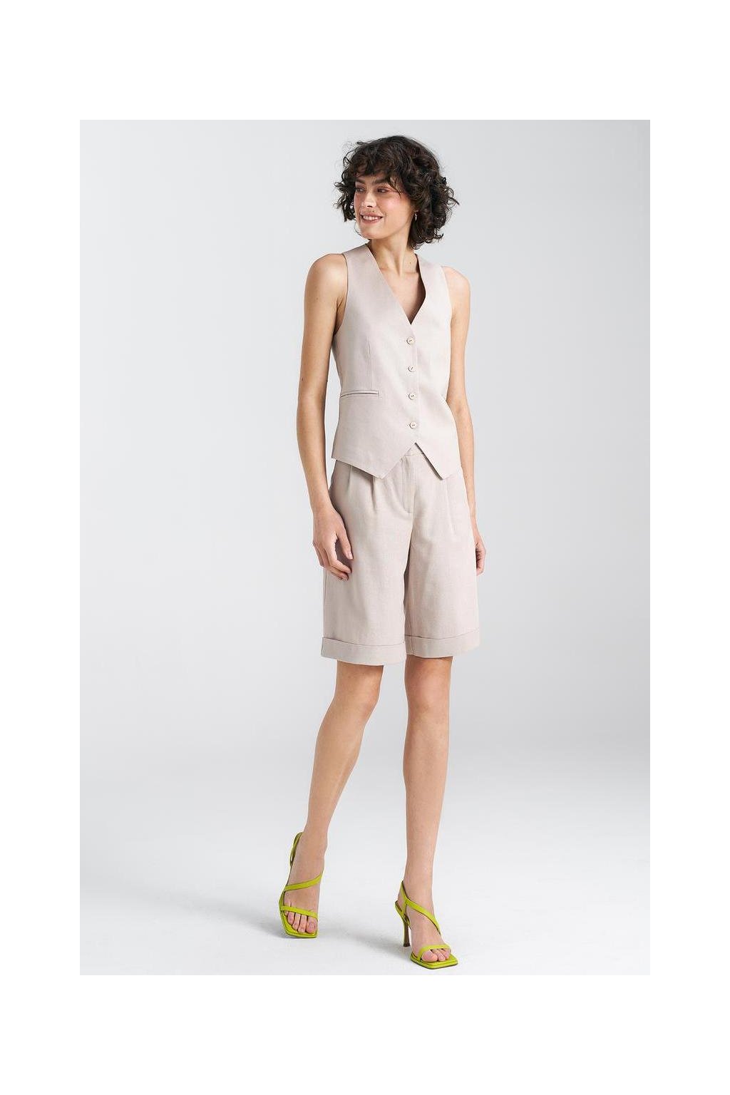 Klasický střih vesty je nezbytným prvkem šatníku, který dodává eleganci a styl každému outfitu. Vyrobená z kvalitní směsi viskózy, lnu a bavlny je nejen extrémně odolná, ale také pohodlná při nošení. Zapínání na přední knoflíky jí dodává klasický charakter a zároveň umožňuje snadné a rychlé oblékání. Má také podšívku, což zvyšuje pohodlí a estetiku nošení vesty. Tato vesta bude ideálním doplňkem do formálních i běžných stylizací, dodávajícím jim zvláštní šarm a eleganci.