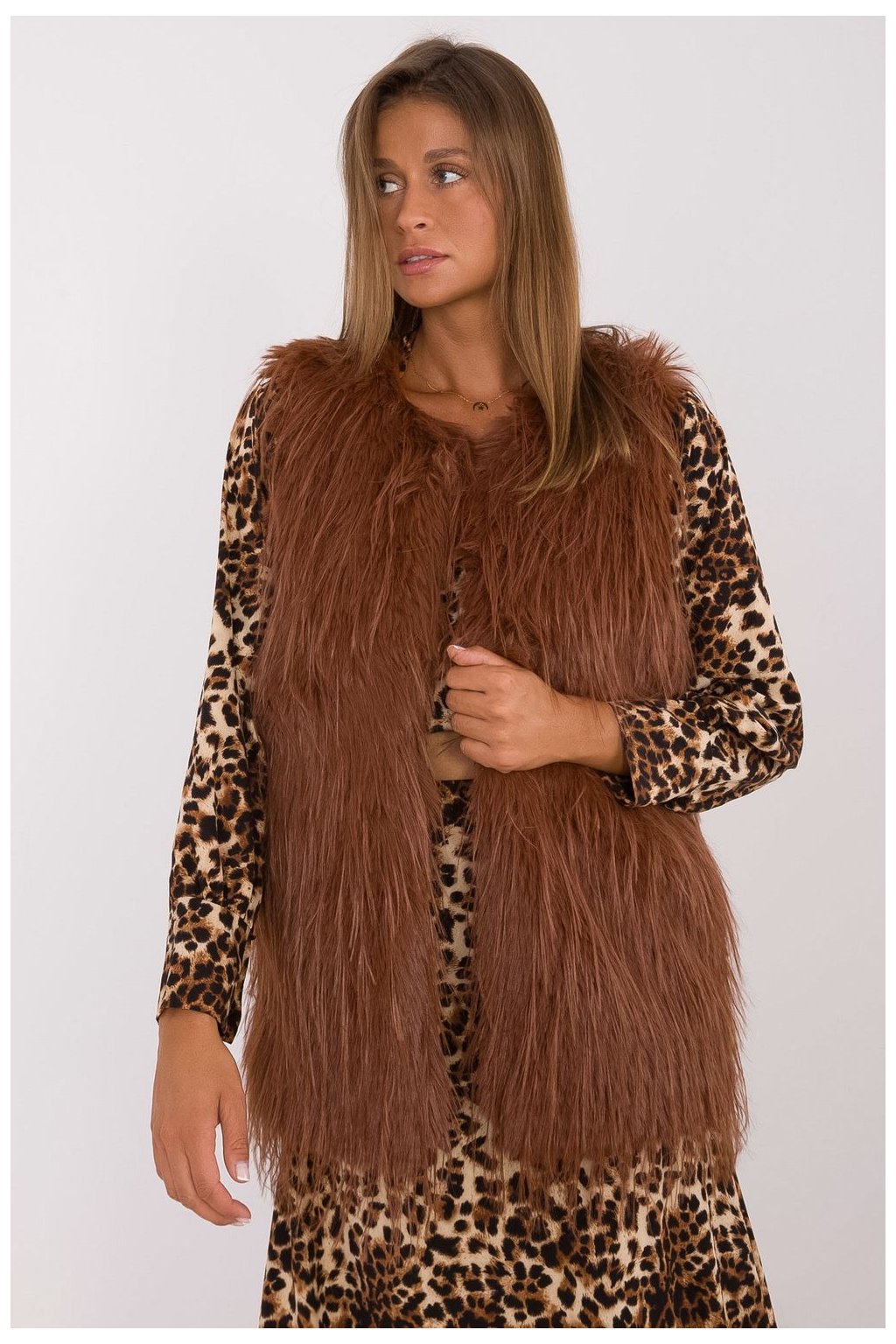 Zde je kožešinová vesta v casual stylu, ideální na každodenní příležitosti. Vyrobená z 100% polyesteru nabízí stylový vzhled a pohodlí nošení. Vesta nemá kapuci ani podšívku, což z ní dělá ideální doplněk pro vrstvené outfity v chladnějších dnech. Vybavena háčkovým zapínáním a podšívkou, zajišťuje pohodlí a perfektní přizpůsobení. Je to dokonalá volba pro ženy, které ocení eleganci a pohodlí v každodenním životě.