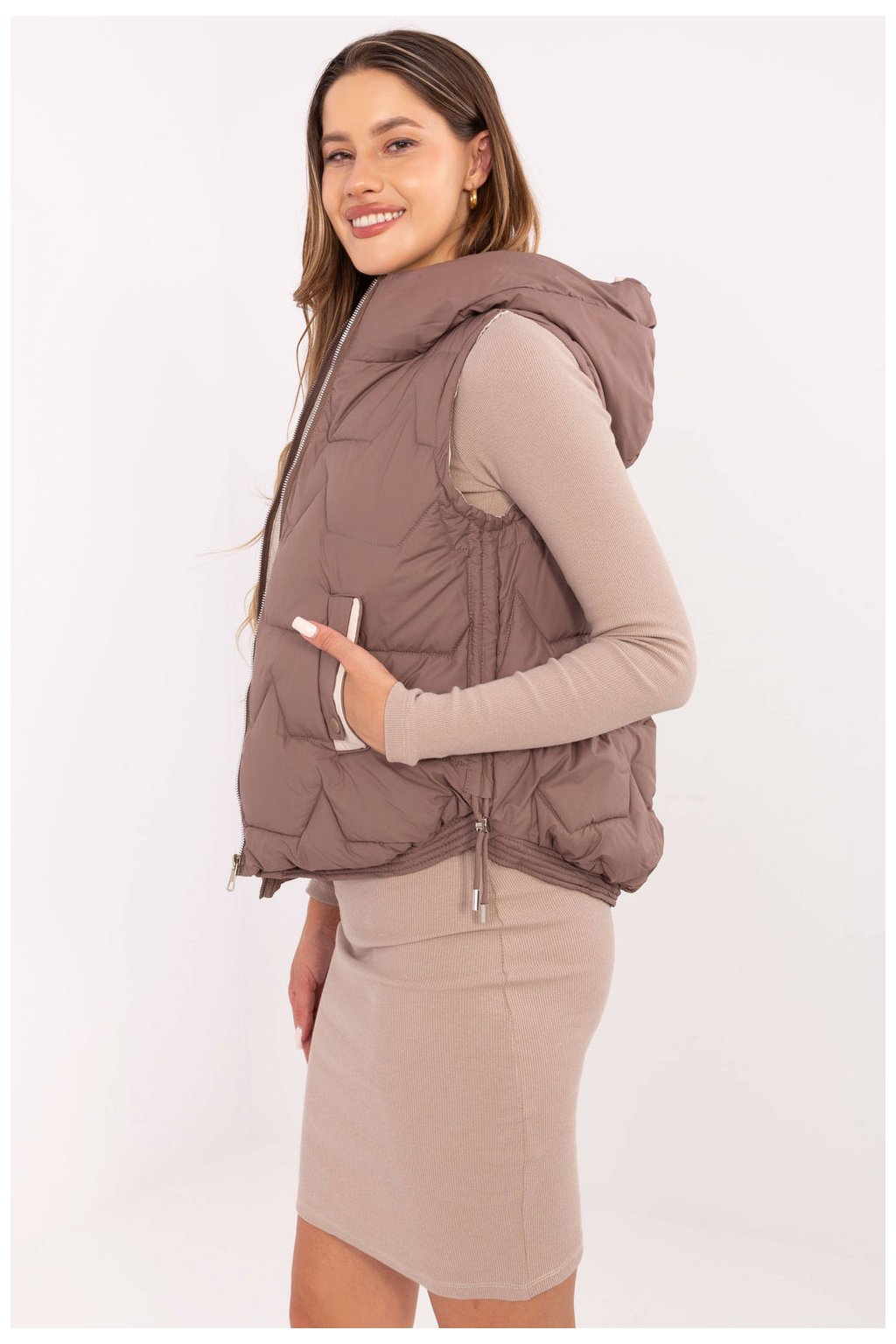Tato dámská péřová vesta je nezbytným prvkem šatníku na přechodné období: podzim, jaro a také teplejší zimní dny. Spojuje ležérní styl s funkčností, skvěle se hodí na každodenní nošení. Vyrobená z hladkého polyesteru s syntetickým zateplením a podšívkou poskytuje pohodlí a ochranu před chladem. Stříhání jí dodává módní a sportovní charakter. Krátká délka je univerzální a neomezuje pohyb. Vestu doplňuje kapuce, která chrání před větrem a lehkým deštěm. Zapíná se na zip a má vložené kapsy, skvělé na zahřátí rukou nebo uložení drobností.